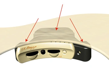 Die Stegeinlage befindet sich in einer schrägen und zugleich angewinkelten Ausfräsung im Steg, der Saitenhalterung der Gitarre. Die Stegeinlage überträgt die Saitenenergie auf den Steg, von dem aus die Decke der Gitarre in Bewegung gesetzt wird. So entsteht der Schwingungsvorgang und die Präzision der Stegeinlage übernimmt zu Beginn eine wichtige Rolle für die Qualität des Tons.