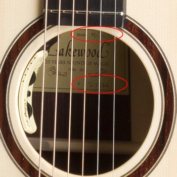 Du findest Modellbezeichnung und Seriennummer auf dem Etikett, dass du beim Blick durch das Schallloch auf dem Gitarrenboden sehen kannst.