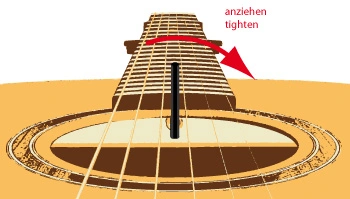 Antwort: Je nach Saitenstärke und –beschaffenheit können sich Saiten einklemmen. Du kannst die Reibung in den Saitenkerben mit dem Auftrag von Graphit (Bleistift) verringern. - Einzelne oder alle Saiten schnarren beim leeren Anspielen. Was ist geschehen?