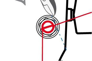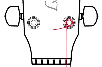 Bei Mechaniken ohne Gehäuse ist die Saitenachse nur durch eine Führungshülse auf der Kopfplattenvorderseite ausgerichtet. Prüfe durch seitlichen Druck den Sitz dieser Hülse. Sollte sich die Hülse bewegen lassen, können du sie mit den Fingernägeln nach oben heraus ziehen. Trage anschließend eine sehr kleine Menge Haushaltskleber an die angegebene Stelle auf und drücke die Hülse wieder in ihre Position.